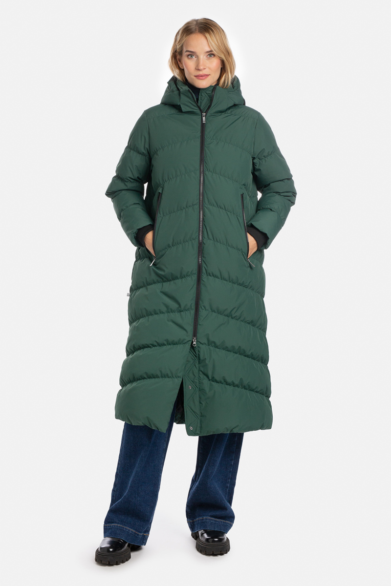 Huppa naiste sulemantel naima on hea pikk, soe, kuid samas kerge vee- ja tuulekindel sirge lõikega sulemantel talviseks hooajaks.