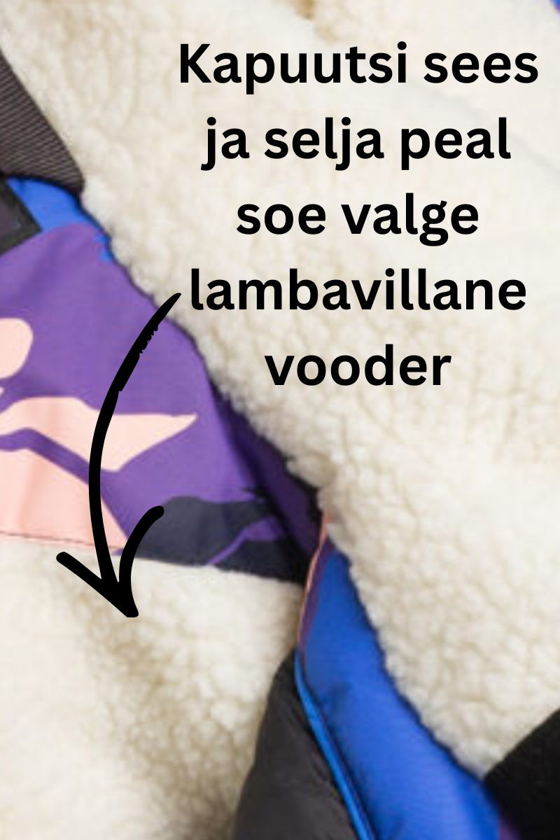 Pehme lambanaha imitatsiooniga vooder selja ülaosas ja kapuutsi sees hoiab keha soojas ka pakase ja tuulise ilmaga